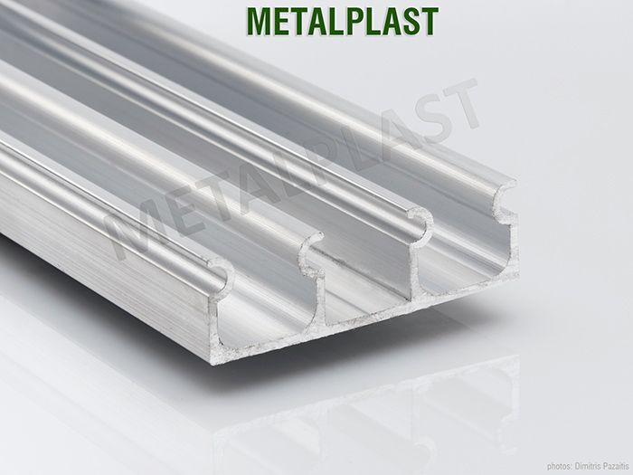 Διπλό κούμπωμα αλουμινίου για χωρίσματα και ανεξάρτητα κουμπώματα νάιλον σε οροφές και πλαϊνά σημεία. Διαθέτει γραμμή στο κέντρο που διευκολύνει τους τεχνικούς στην εγκατάσταση στους Θερμοκηπιακούς σκελετούς Διαθέσιμο σε δέματα των 60 μέτρων ( 10 βέργες των 6 μέτρων μήκους η κάθε μια)